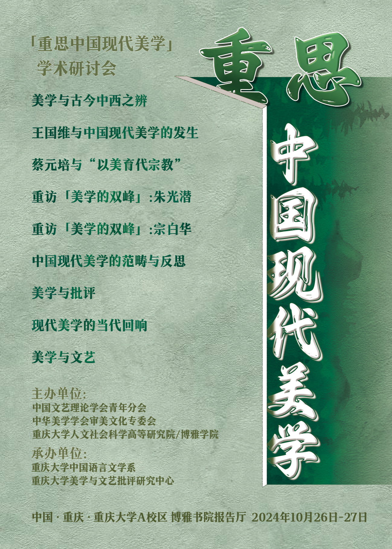 情色av 人文社会科学高等研究院/ 情色av 中国语言文学系与中国文艺理论学会青年分会、中华美学会审美文化专委会将于2024年10月26日-27日联合举办“重思中国现代美学”学术研讨会。