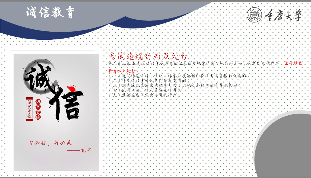 违纪处分办法》中关于“考试违规行为及处分”的内容,强调诚信考试的重要性,告诫同学们切勿触碰底线。