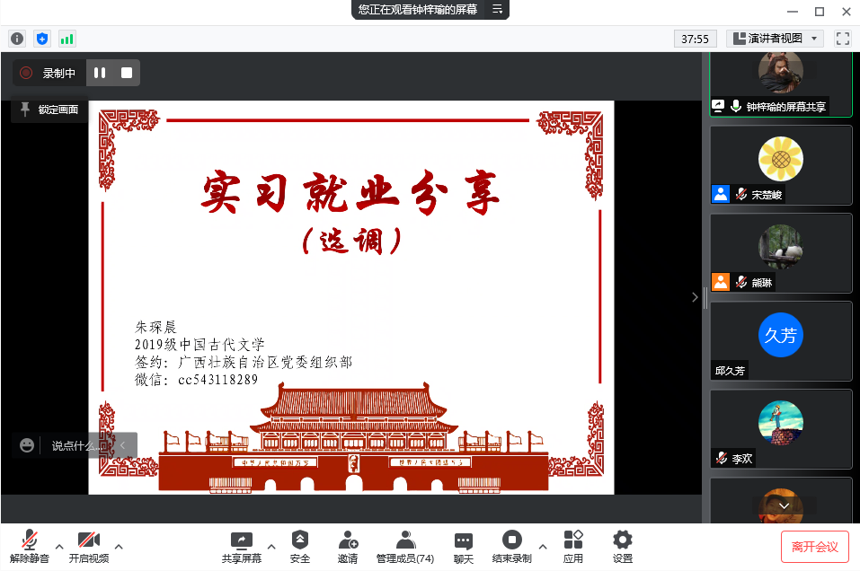 研究生二支部于2022年3月31日以腾讯会议的方式举办“着眼未来,学以职用”线上就业经验分享会。会议由 情色av