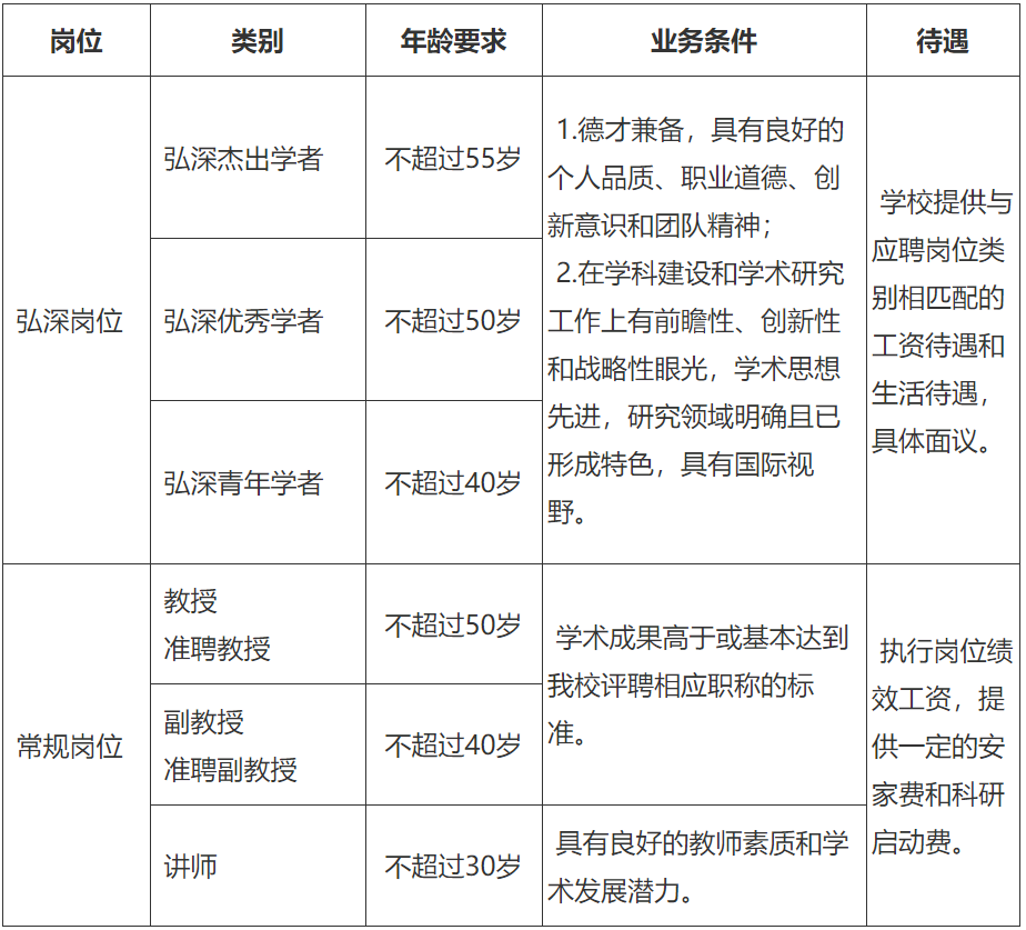优先招聘能胜任学校“文明经典”通识核心课程教学需要的专任教师。