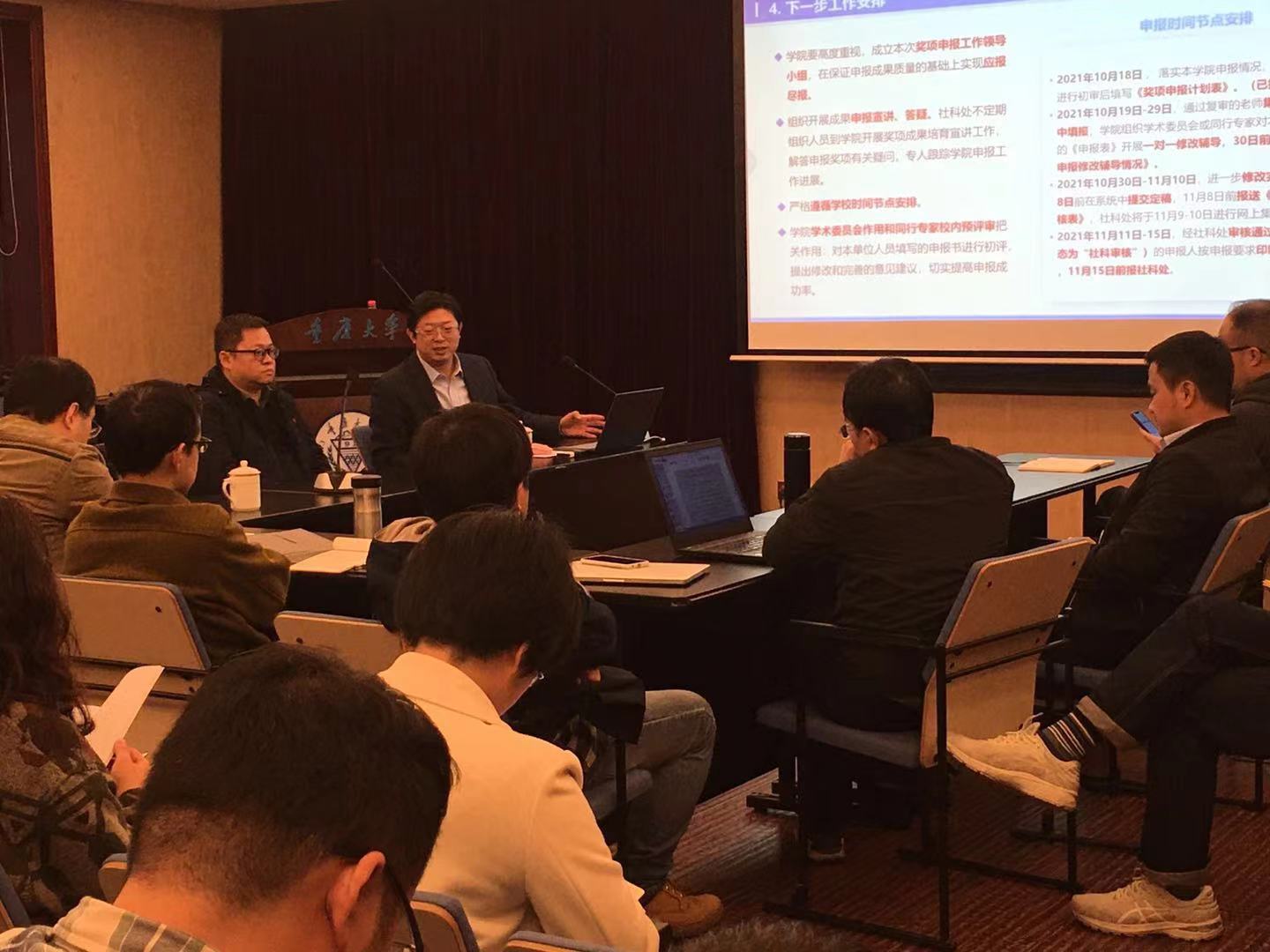 的学科和成果优势等做了详细对比分析。希望广大教师要抓住机会,充分发掘成果优势,积极投入此次报奖工作。学校也将做好服务工作,希望通过学校与老师的共同努力,取得更大地突破。