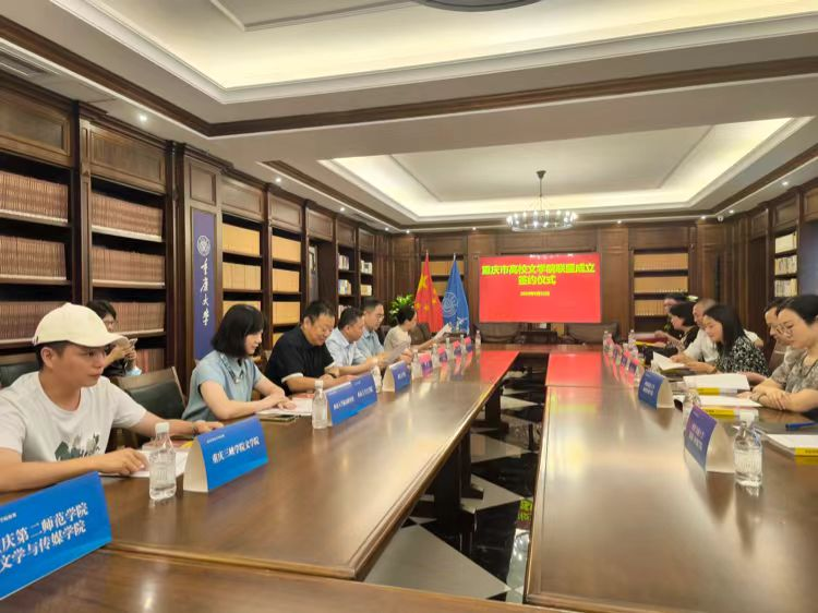 图书馆重大文库成立,重庆文学院与在渝十二所高校的文学院系相关负责人参与了此次活动并现场签约。这是国内首个省级高校文学院联盟,也是目前国内各类文学联盟中参与单位较多、层次较高的文学联盟。