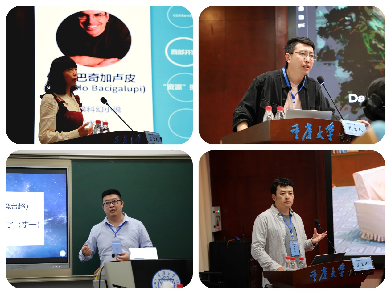 为期一天的会议围绕十二个议题展开,涵盖了生态科幻批评、科幻人类学、科幻影视、女性主义科幻、后人类身体美学、当代中国科幻等多个方面。分论坛中,参会者就不同话题进行了热烈讨论。四川大学王一平教授以《水刀》为例,指出其不仅在人与自然的关系方面展开推演,更呈现了人与自然和人类社会内部关系的映照。复旦大学的吕广钊则讨论了小说《丛林温室》的物质能动性,指出小说中对人与非人关系的思考提供了人类迈向“克苏鲁世”的思想框架。四川大学姜振宇副研究员以刘慈欣小说的中国现代父子关系为核心,指出其笔下的父辈与子辈构成了前赴后继的同志关系。北京语言大学的胡亮宇则以“弱影像”为核心,探讨了这一概念在当代中国科幻电影中的运用及效果。