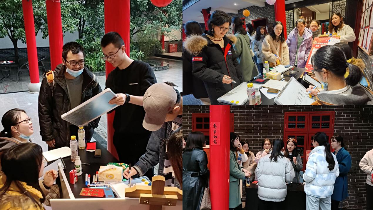 节目结束后,老师和同学们走进小院参加游园会的趣味游戏环节。在志愿者的引导下,游戏区人头攒动:“翻杯子井字棋”展现了小队间智慧与速度的紧张较量,“你画我猜”考验着同学之间的默契与配合,“投壶”、“飞花令”仿佛带领同学们穿越回了古代,感受文人志士的高雅情趣……老师和同学们共同参与,或是团队合作,或是小组PK,现场气氛热烈。