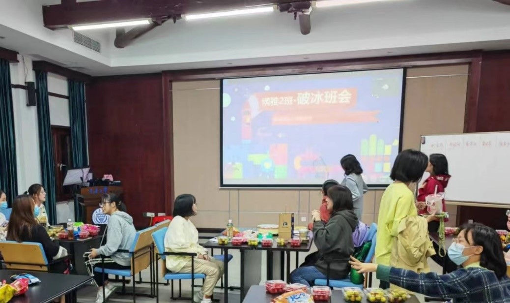 2022级2班本科新生第一次班会在博雅小院报告厅举行。本次班会通过线上、线下相结合的形式开展,由金雨萱、罗莉渝同学主持,班主任朱学博老师、辅导员高宏佳老师和2022级2班的31位同学参加了此次会议。