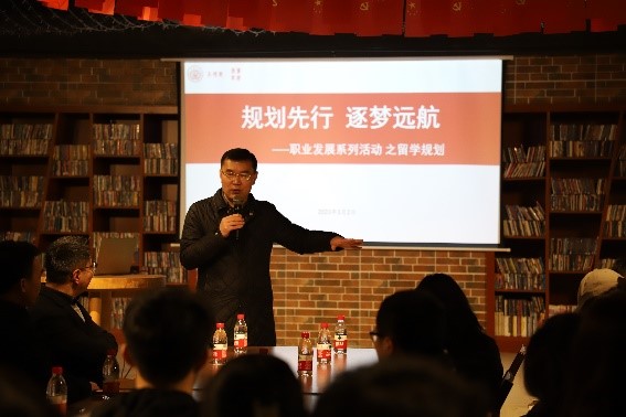党委副书记姜雪峰从新形势下出国留学的背景、当前国内就业的压力与面临的严峻形势出发,提醒学生要放眼世界,提升格局,实现梦想;姜书记还希望同学们可以畅所欲言、大胆提问,通过座谈会明晰自己关于出国留学以及职业规划相关的疑惑与迷茫。校教育基金会许骏秘书长则表示在职业规划过程中学生自己的顿悟和专家的指导都非常重要,希望同学们可以抓住机会,让个人实现更好的发展。