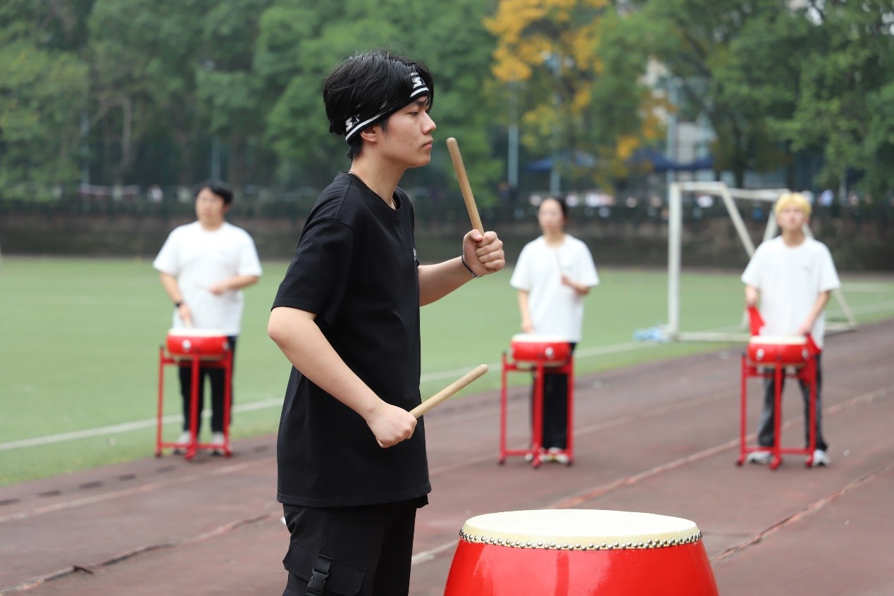 台上三分钟,台下十年功。开幕式精彩表演的背后,离不开学院领导的高度重视与大力支持,更离不开同学们争分夺秒排练的汗水。他们克服了许多困难与意外情况,共进行7次集体排练及数次舞蹈、打鼓单独练习。还花费了大量时间精力协调物资、场地、舞蹈老师等各方面资源。本次具有学院特色、独树一帜的开幕式表演是学院凝心聚力,师生共同努力换来的。