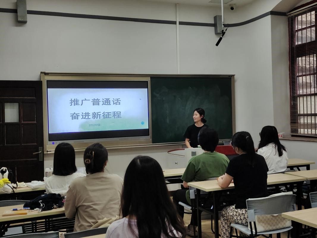 宣传推广普通话,加快奋进社会主义现代化新征程。各团支部采用线上线下多种方式,全方位、多层次向同学们宣传推广普通话。通过观看了普通话推广视频,同学们认识到普通话对于传承优秀文化和助力乡村振兴的意义和价值,纷纷表示要积极推广普通话,做好践行者和推广人。