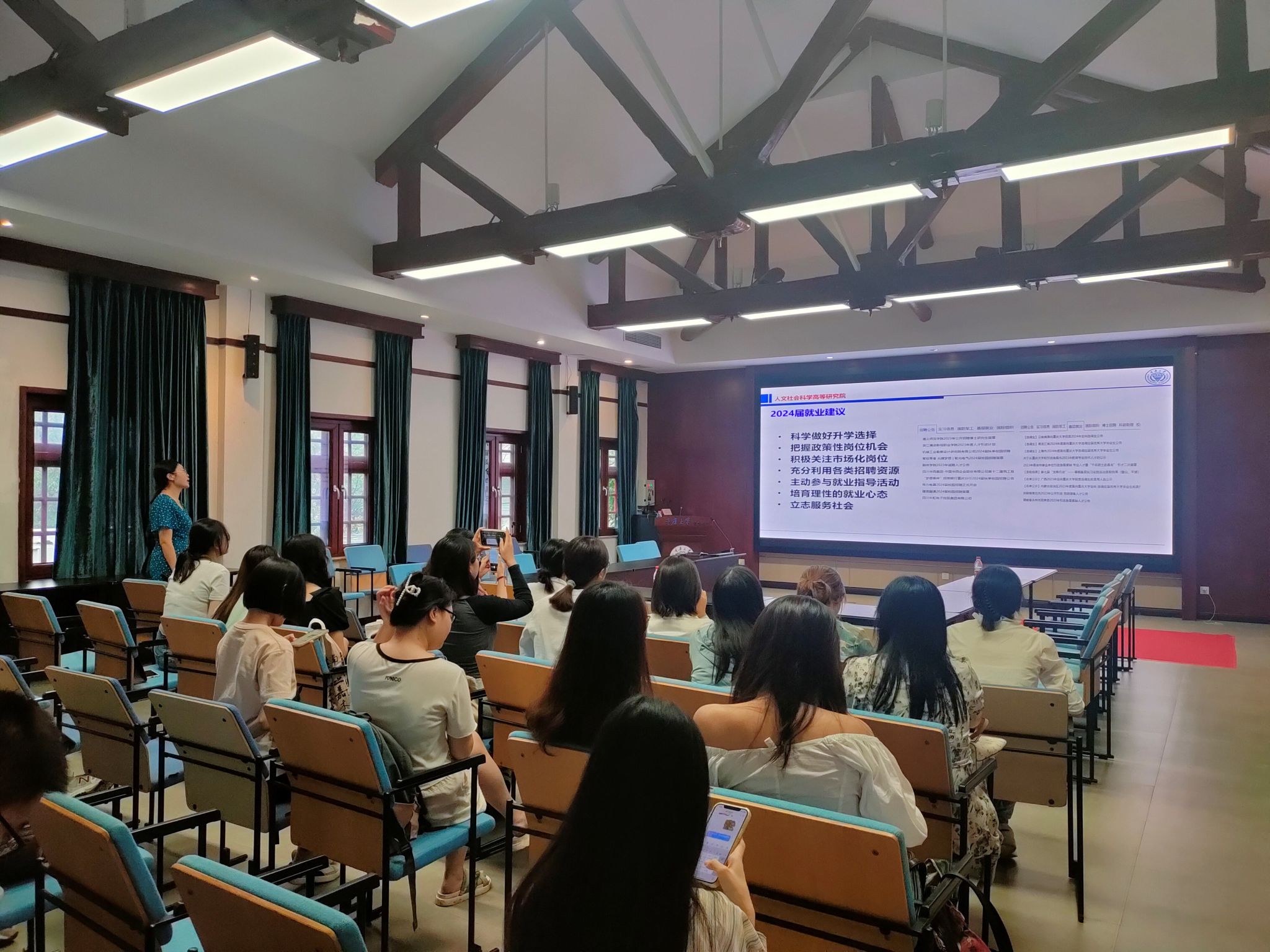 会议伊始,郑老师详细分析了当前的宏观就业形势以及疫情前后的就业状况,为同学们全面了解就业环境提供了重要依据。她引用了2023届学长学姐的毕业情况作为案例,指出过去毕业生的就业方向逐渐受到企业产业转型、研究生扩招等因素的冲击。在这种背景下,她呼吁同学们要转变就业观念,早作准备,积极争取,主动行动。结合学院历届学生的就业去向,郑老师分析了国企央企、教育行业公务员等行业和企业面临的竞争情况,并结合当前同学的就业意向,解析了同学可能会面临的问题和困难,鼓励同学们要紧跟时代发展潮流,提升自身的专业素养,早作准备,提前规划,提升就业竞争力。