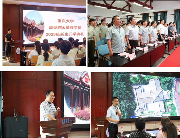 2023级新生开学典礼在庄严的国歌声中拉开序幕。典礼由郑家勤老师主持。