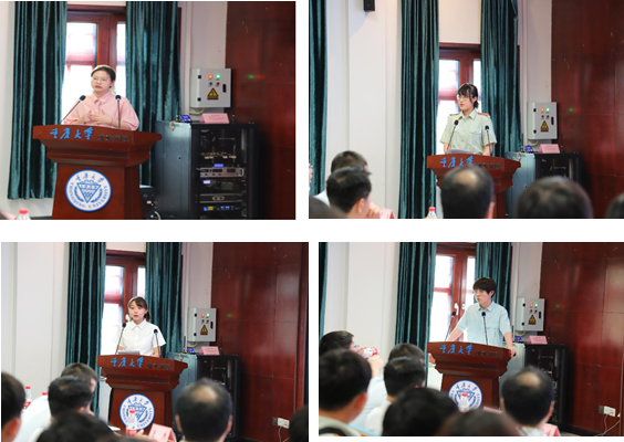 随后,学生代表边雨柯、李睿怡、高波、童博轩依次上台发言,从不同角度出发,交流求学历程中的感悟,他们纷纷表示,要牢记“耐劳苦、尚简朴、勤学业、爱国家”的重大精神,胸怀天下,志存高远,将“青春小我”融入“时代大我”,让青春在全面建设社会主义现代化国家的火热实践中绽放绚丽之花。