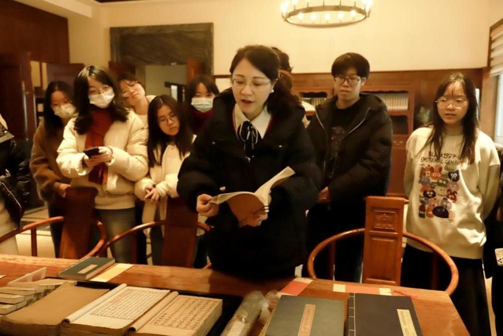 活动伊始,王彦力老师向同学们展示了特藏部珍藏的各类典籍。从历经重庆大轰炸仍保存完好的《万有文库》,到国学大师章学诚的殿试卷子,再到各类典藏古籍与民国报刊,无不沉淀着珍贵的历史人文记忆。同学们来到古籍部自主参观,对线装古籍与民国文献的印刷用纸、版式结构、装帧方式、储藏条件展开探讨交流。