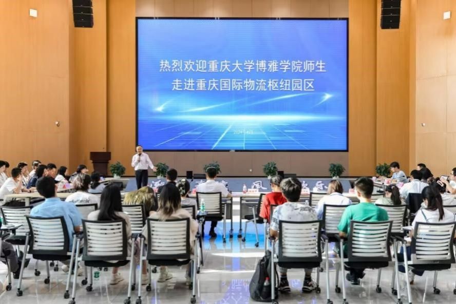 组织全校60余名师生前往重庆国际物流枢纽园区开展实践活动,通过园区参观、实地体验、聆听报告等感受重庆作为中外经济文化交流枢纽城市的独特魅力。重庆国际物流枢纽园区党委书记、董事长刘金平,党委副书记、监事会主席罗书权, 情色av