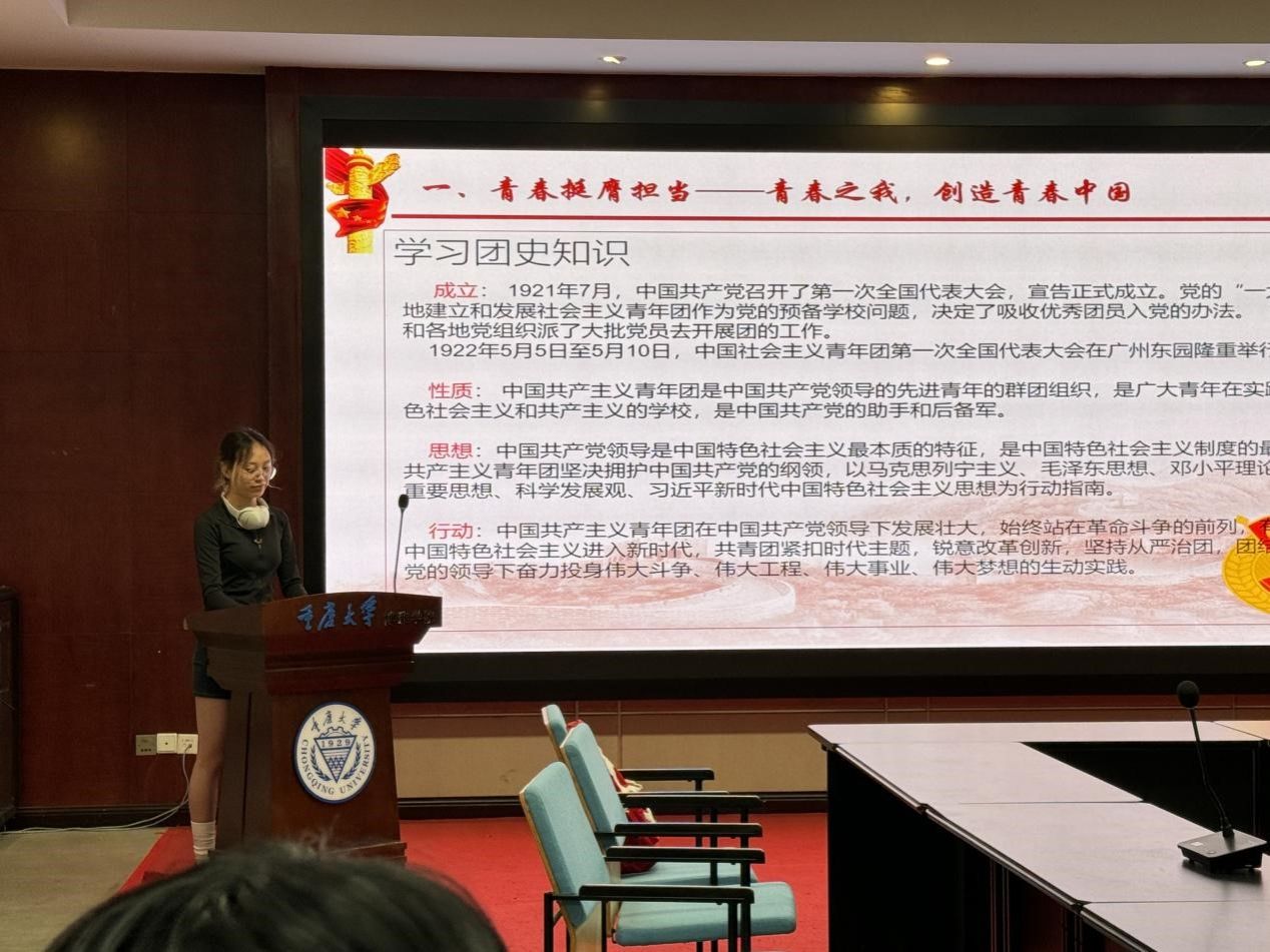 回顾光辉历史,青春一脉相承。为进一步加深同学们对五四精神的理解,各支部共同回顾了一百多年来青年运动的发展历程。2021级团支部集体观看了《新时代五四精神,青年在行动》系列视频,深入学习宣传贯彻五四精神;2022级团支部回顾了中国共产党领导下青年运动的光辉历程;2023级团支部的黄诗雨、李睿怡同学通过分享黄继光、聂耳的榜样故事,呼吁大家匡正理想目标,争做优秀共青团员。