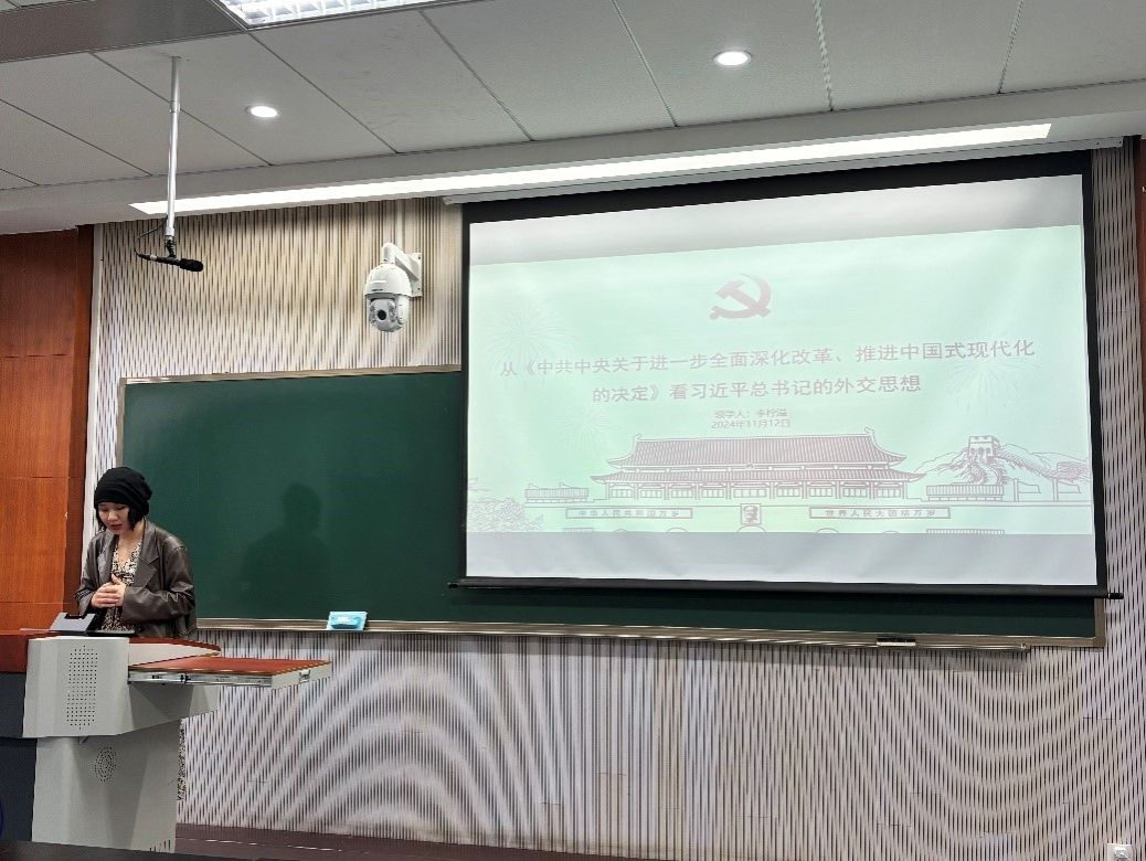 理论学习夯基础,思想交流聚共识。各支部围绕主题开展理论学习。2022级团支部、2023级团支部从《中共中央关于进一步全面深化改革、推进中国式现代化的决定》出发,学习习近平外交思想,了解“十个坚持”的丰富内涵,领会习近平外交思想的重大意义、丰富内涵、核心要义、精神实质、实践要求;2024级团支部从实例出发,解读习近平新时代中国特色社会主义思想,探讨了重要的国家战略。