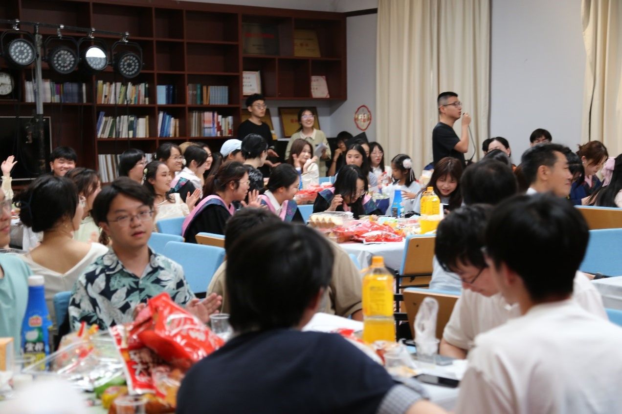 下午6点,师生们齐聚博雅书院报告厅,开始温馨茶话会。大屏幕播放的毕业生成长VCR唤醒无数共同记忆;程可苒、方刘国同学演唱的《二十二》烘托出温馨氛围。学院孙江林书记关切提醒毕业生直面未来挑战,学会调适心境;唐杰副院长回顾博雅教育初心,强调“全人”素养是应对不确定性的宝贵财富,并送上诚挚祝福。
