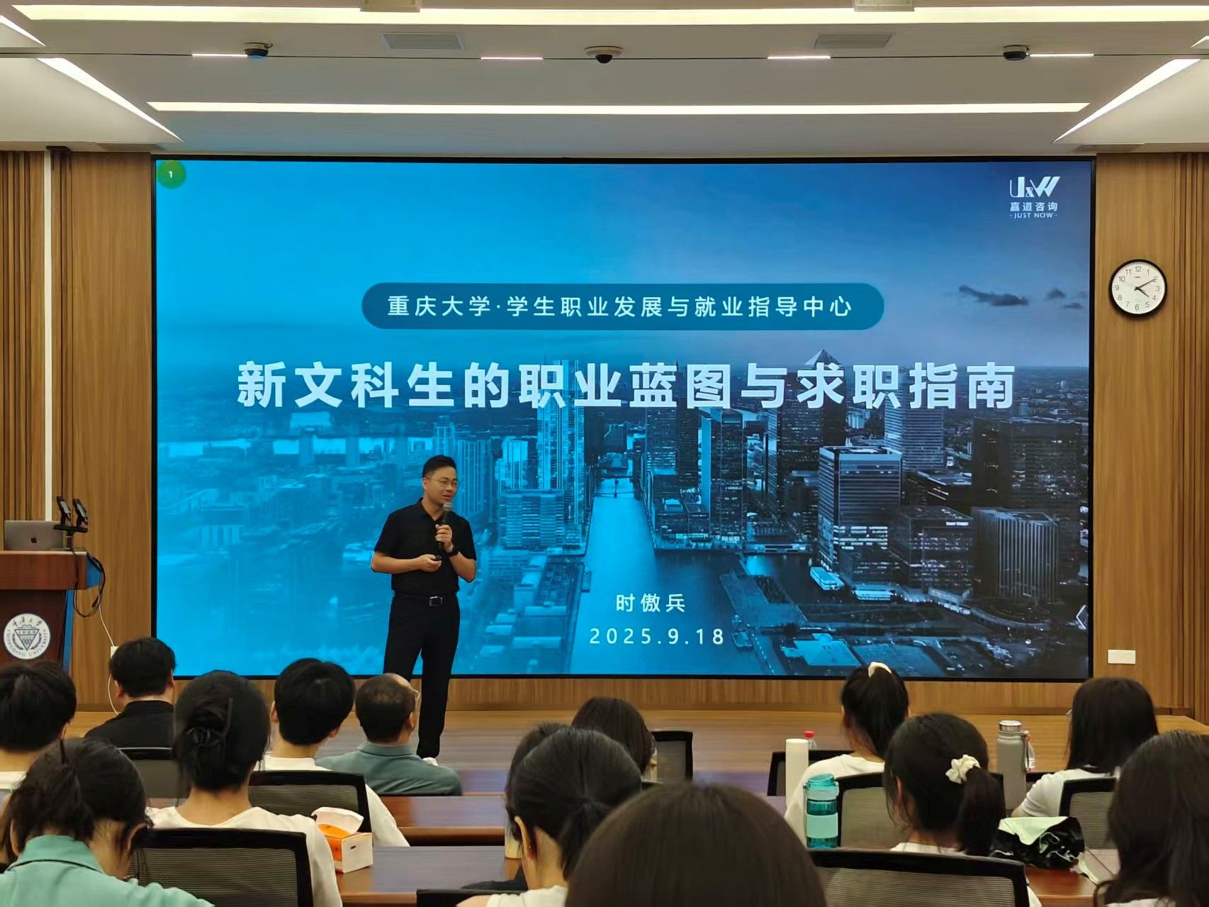 就业育人导师时傲兵在A区经管学院楼A101教室作题为“新文科的职业蓝图与求职指南”的专题分享。会议由 情色av