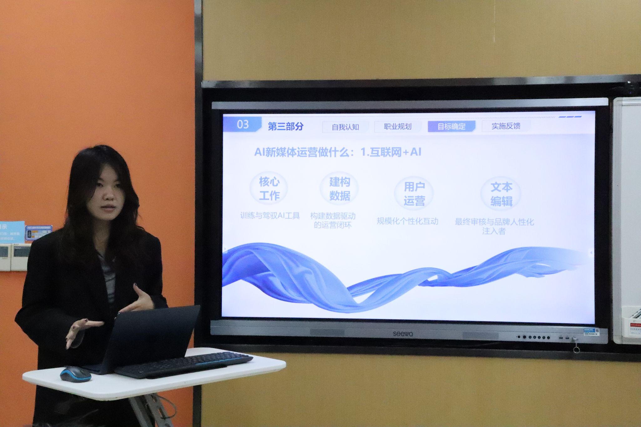 比赛分为“成长赛道”与“就业赛道”两个平行单元。在“成长赛道”中,本科生选手们虽略显青涩但充满探索热情,他们围绕职业目标、实习实践行动、优化改进三方面进行了陈述,展现了在探索中成长的宝贵历程。在“就业赛道”中,研究生选手们的表现则更具专业性。他们紧密结合自身专业领域与实习经历,对目标行业、岗位胜任力及发展潜力进行了深入剖析,清晰地勾勒出短期求职策略与中长期职业发展路径。