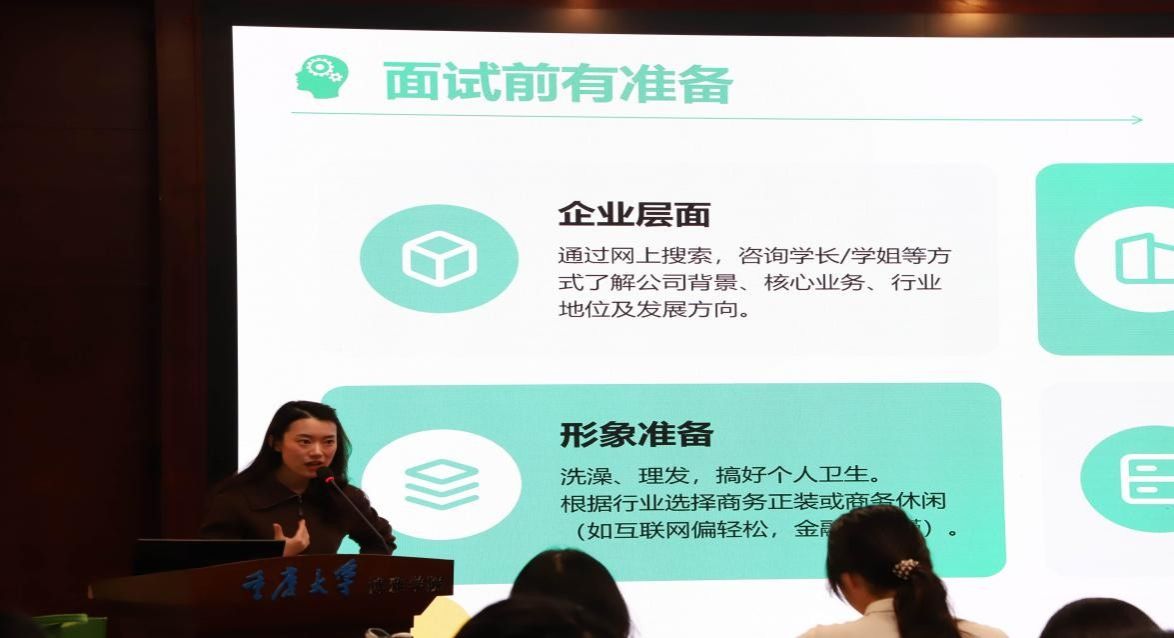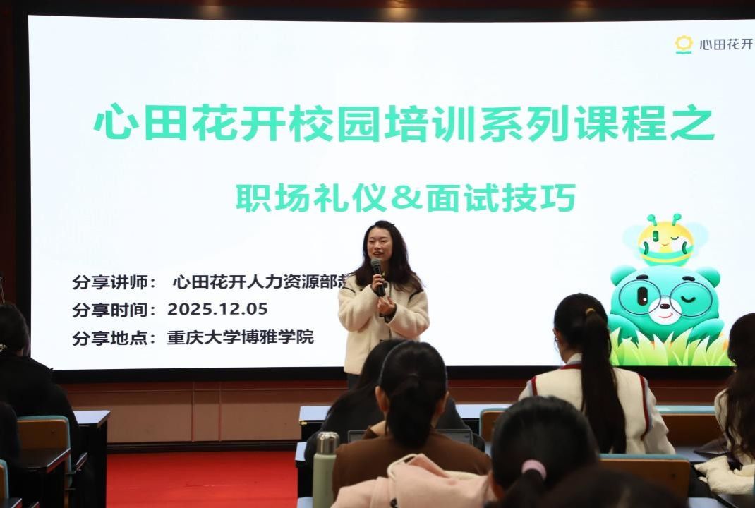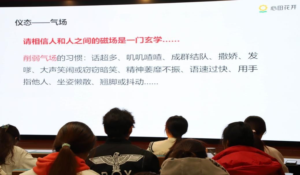 报告厅成功开展职场礼仪和面试技巧专题讲座。讲座聚焦职场礼仪、形象塑造与面试实战核心需求,为同学们送上了一场干货满满的成长赋能课。本次讲座由心田花开人力资源部副总监赵雅欣主讲,研究生辅导员高宏佳老师主持,参与人员覆盖本科生和研究生。