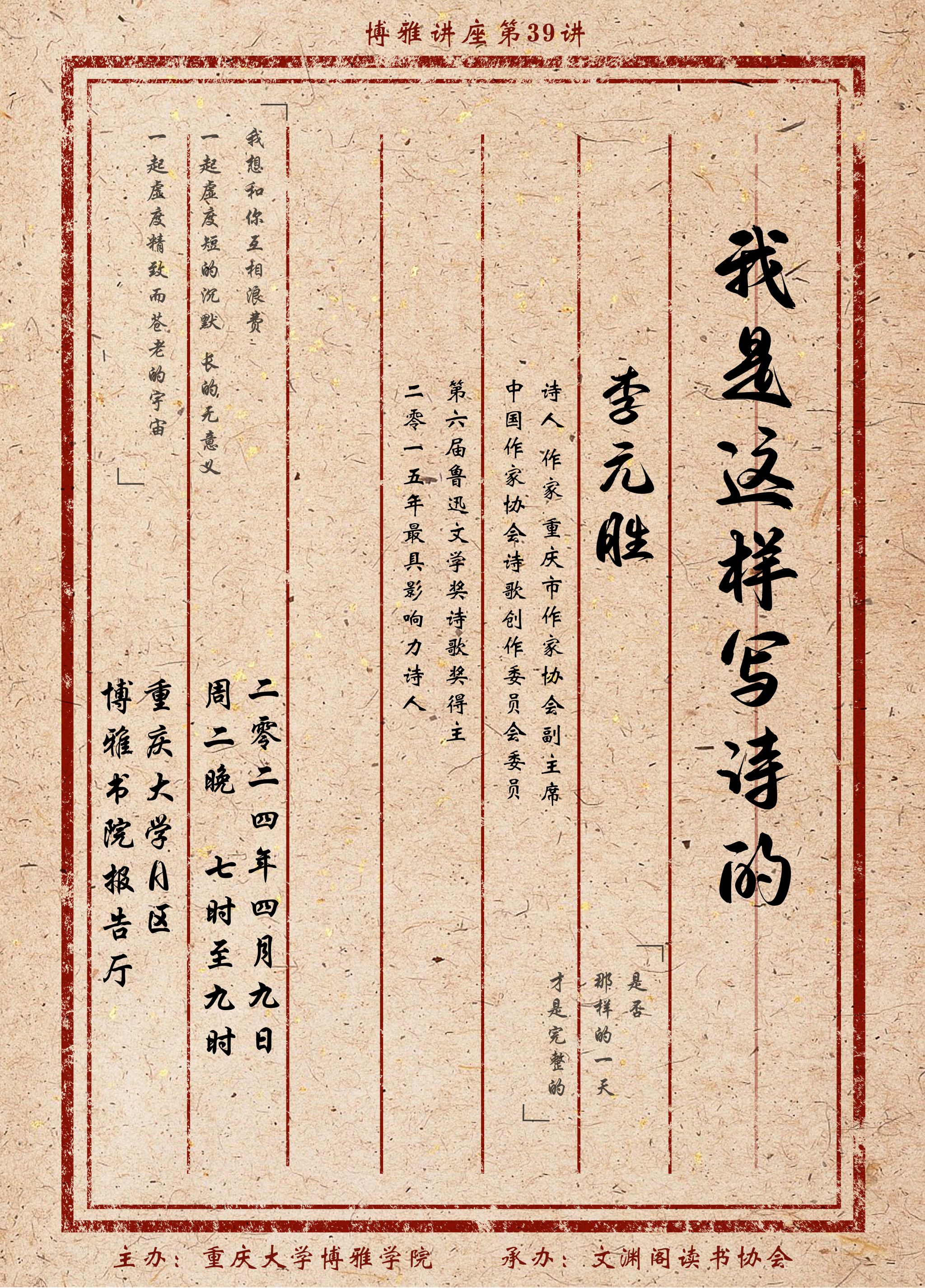 主讲人:李元胜(著名诗人、作家,鲁迅文学奖得主)