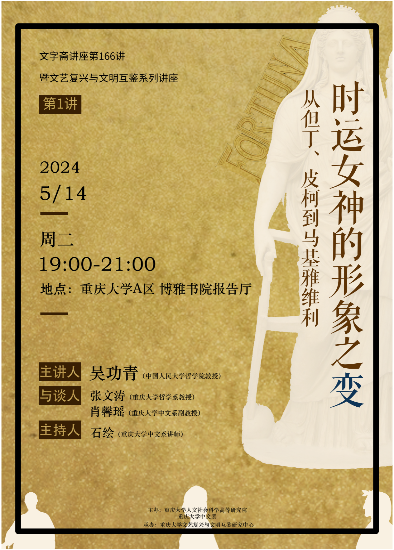从中世纪晚期到文艺复兴,Fortuna(时运、机运)的形象发生了翻天覆地的变化。在但丁眼中,Fortuna是时运女神,它代表了上帝意志,操控着世间的兴衰;在皮柯眼中,人至少不再受制于来自于天体的机运,凭着自己的意志进行自我塑造;到了马基雅维利那里,Fortuna蜕变为《君主论》中受人压制的女子,失去了统治性的地位。本次讲座试结合文艺复兴时期时运女神的形象之变,分析早期现代人的自我认知和自我塑造,并力图揭示这一激进革命所隐含的危机。