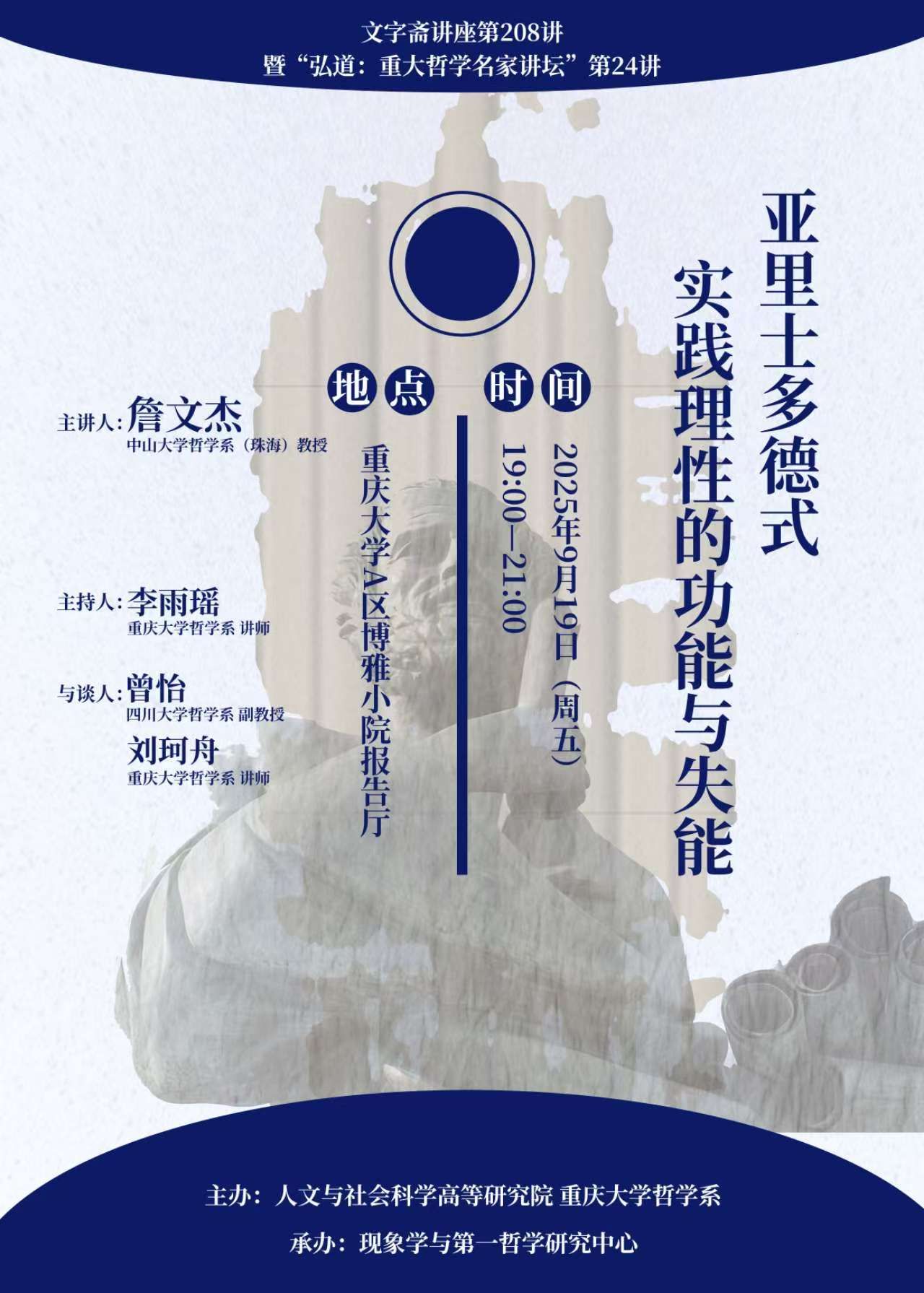 extend1 【文字斋讲座】亚里士多德式实践理性的功能与失能 extend2 主讲人:詹文杰(中山大学哲学系(珠海)教授)