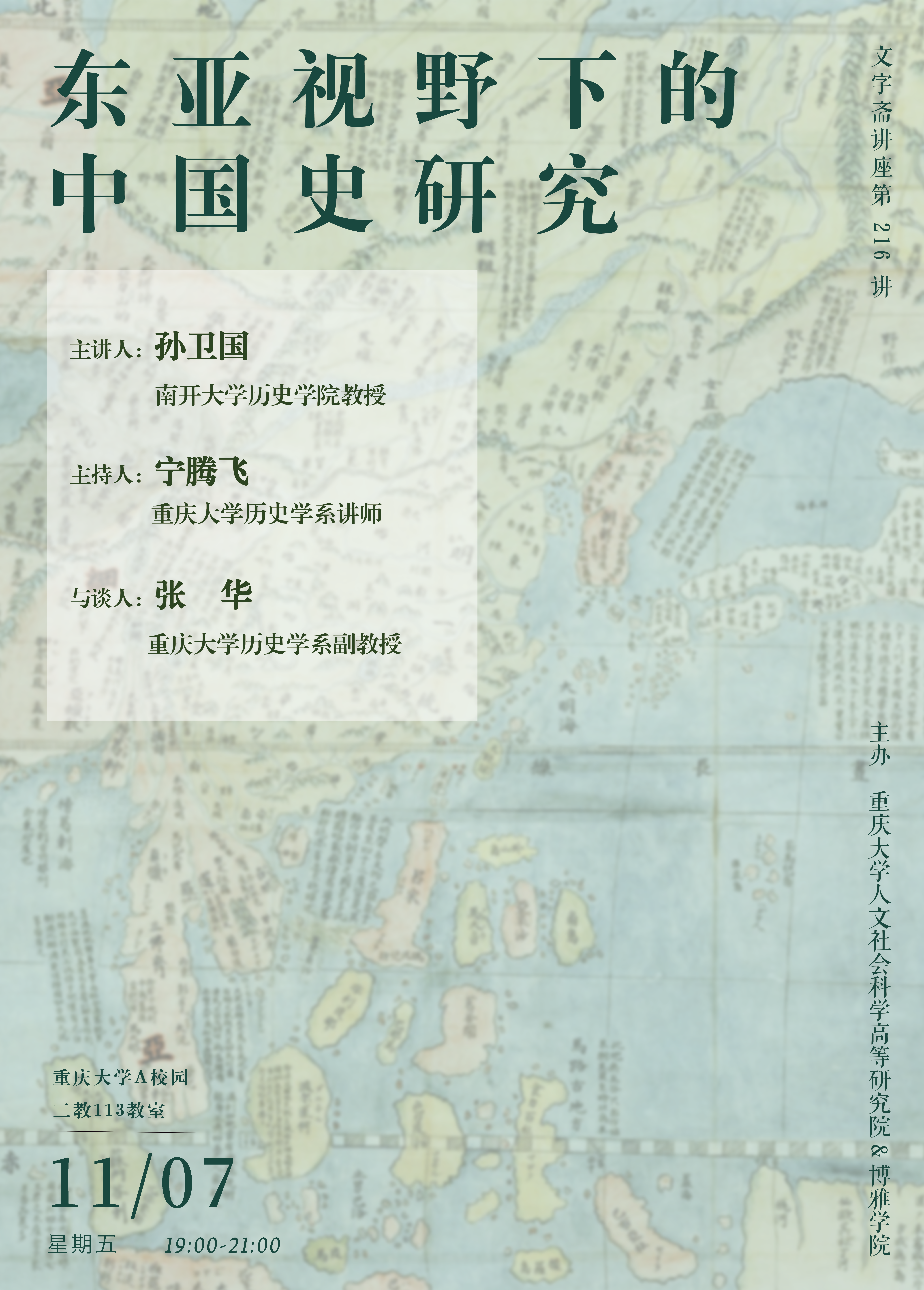 extend1 【文字斋讲座】 东亚视野下的中国史研究 extend2 主讲人:孙卫国(南开大学历史学院教授)