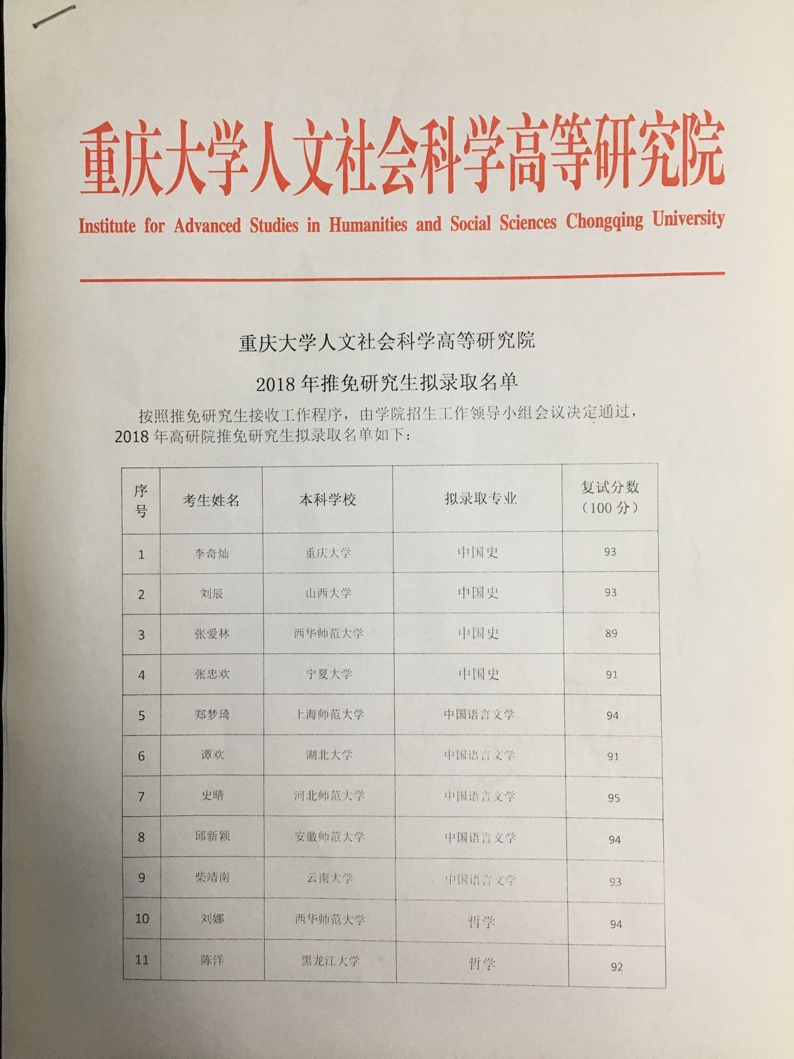 情色av 人文社会科学高等研究院2018年推免研究生拟录取名单公示