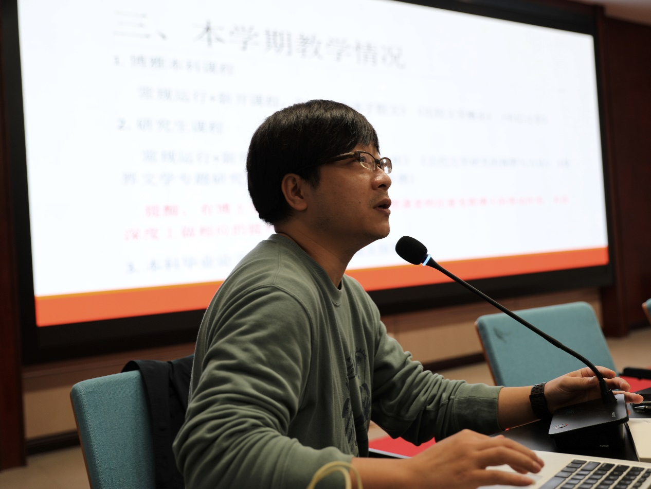 切实提高学生培养质量是中文系工作的重中之重。为此,万曼璐副系主任围绕课程教学、学业指导及研究生招生工作做了报告。她指出,中文系研究生推免招生工作的可喜成绩与学科实力的提升密不可分,而在新的培养方案出台并实施的背景下,本学期新开设课程亦多有亮点。