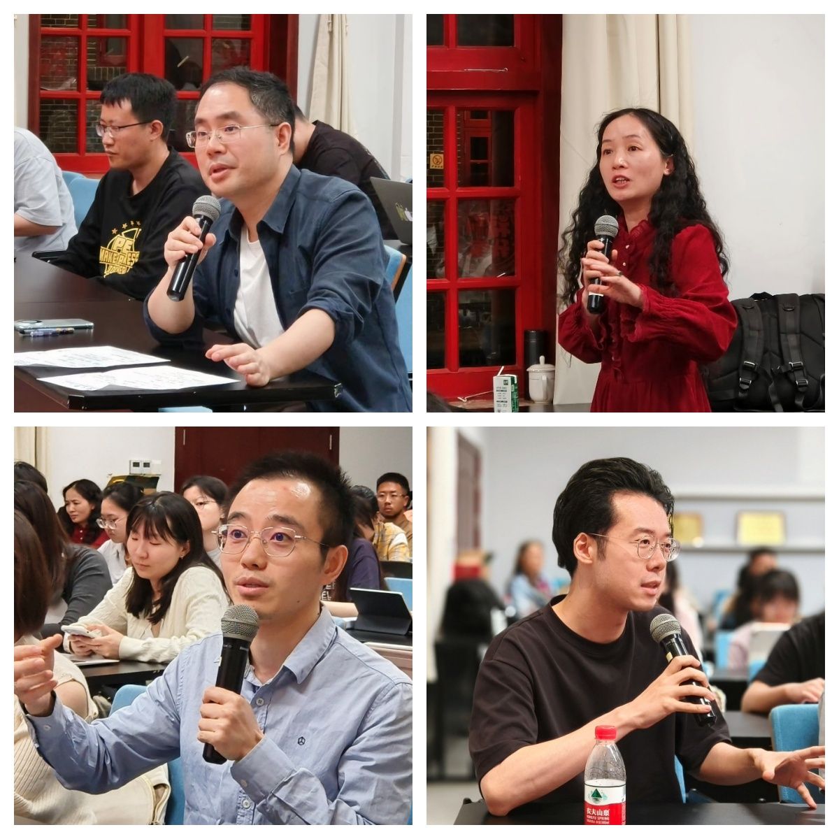 梁展教授沿时间脉络梳理了自然科学和文学学科的紧密联系,着重谈论了两个世纪以来自然科学的崛起对文学学科的学科建制、研究方法和理论产生的重大影响,引起了听众们的热烈反响,师生们积极地进行提问与交流。李广益教授向梁展教授请教了数智时代以技术模拟、创造出来的不具有自身存在的意识体,与笛卡尔的“我思故我在”是否具有同构性这一问题。梁展教授认为二者从深层结构看具有同构性,并通过新结构主义主张主体消亡后产生社会结构问题这一案例加以说明。李玲教授就文化与科学主义的渊源、文化与文明的区别提问,梁展教授以德国文学运动为例说明了文化所具有的社会历史功能。此外,刘洋老师、斯维老师、石绘老师、罗宇老师和博士生黄亚菲分别从文学研究对自然科学概念的误用、文学与社会现实的联系以及文学、哲学、科学的联系等视角提问,梁展教授一一作了精彩解答。