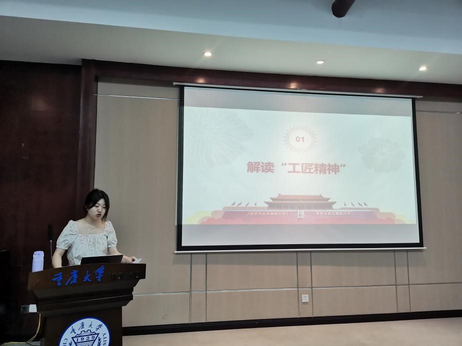 在学习正式开始之前,主持人抛出了两个问题作为引入 “什么是工匠精神”与“说说你所理解的工匠及代表人物”,同学们纷纷踊跃回答。有人说,工匠精神就是一种精益求精、追求卓越的精神;也有人说,广义的工匠精神包括所有爱岗敬业的共和国建设者、奋斗者所具有的精神,他们在各个领域、岗位几十年如一日,默默奉献了自己的一生。