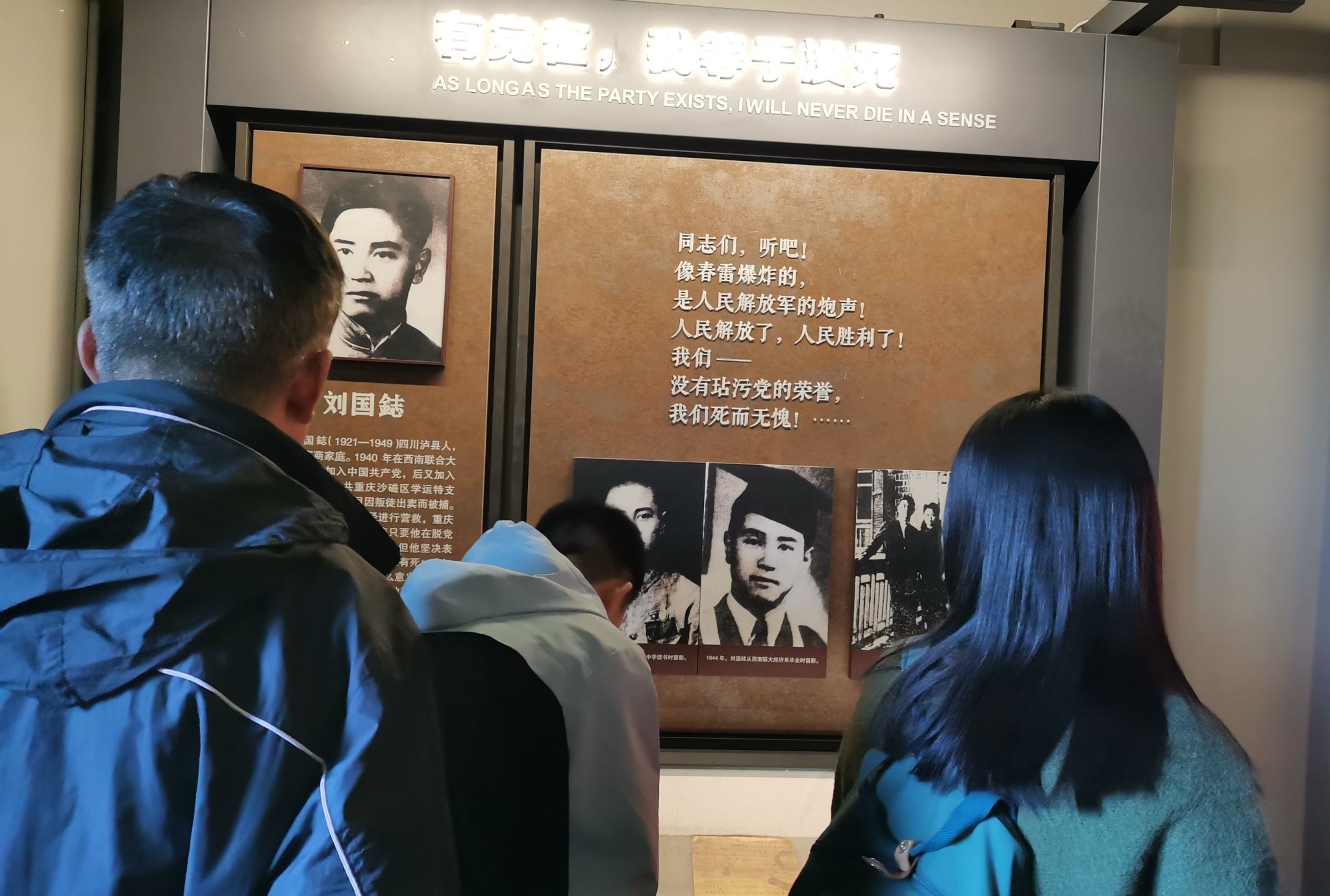 接着,大家沿着歌乐山小径徒步前往白公馆。支部成员在这里聆听了年龄最小的烈士小萝卜头、爱国将领杨虎城、黄显声等人的英勇事迹,学习了“狱中八条”的故事,深刻领悟了革命党人矢志不渝的坚定信念。