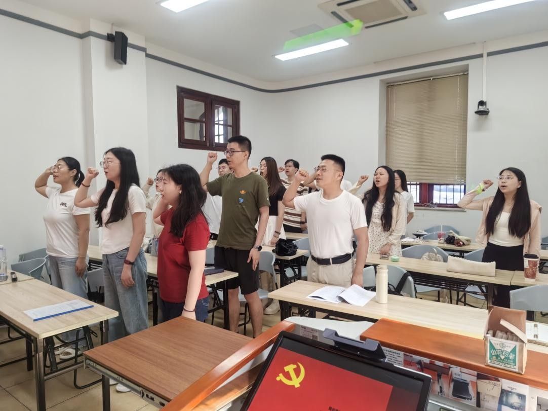 理论学习结束后,支部召开大会一致通过接收涂欣宇同志为预备党员的决议,还进行了预备党员入党宣誓暨党员重温入党誓词活动。面向鲜红的党旗,新老党员一起紧握右拳,庄严肃立,许下了铮铮誓言。誓词虽短,字字千钧,神圣而豪迈,表达了支部党员永葆初心使命,为共产主义奋斗终身的坚定信念和决心。通过重温入党誓词,支部全体党员更加自觉坚定理想信念,明白要牢记入党初心和使命,敢于担当、主动作为、立足岗位,以更坚定的信心、更饱满的斗志、更务实的行动作出新的贡献。