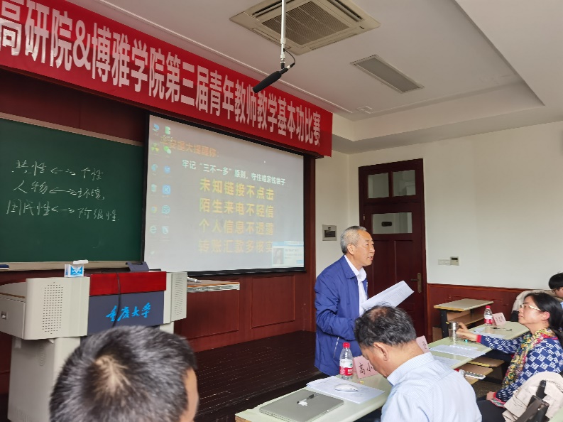 四位参赛教师分别登台讲课,呈现出了精彩的课堂表现,展现出了优秀的学术素养和教学能力,生动、形象地讲述了各自的课程内容。