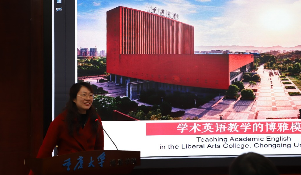 教师肖馨瑶作为教材编著者代表,对《博雅英语》的编写理念、内容架构和特色进行了全面阐述。她指出博雅英语系列在课程设计上分为ABCD四阶段,涵盖英语文学、哲学问题、世界历史、现代社会四个内容板块,通过经典阅读提升学生英语能力、在英语学习中融会专业内容,这是博雅教育理念的成功运用;在教学团队组织上,由 情色av