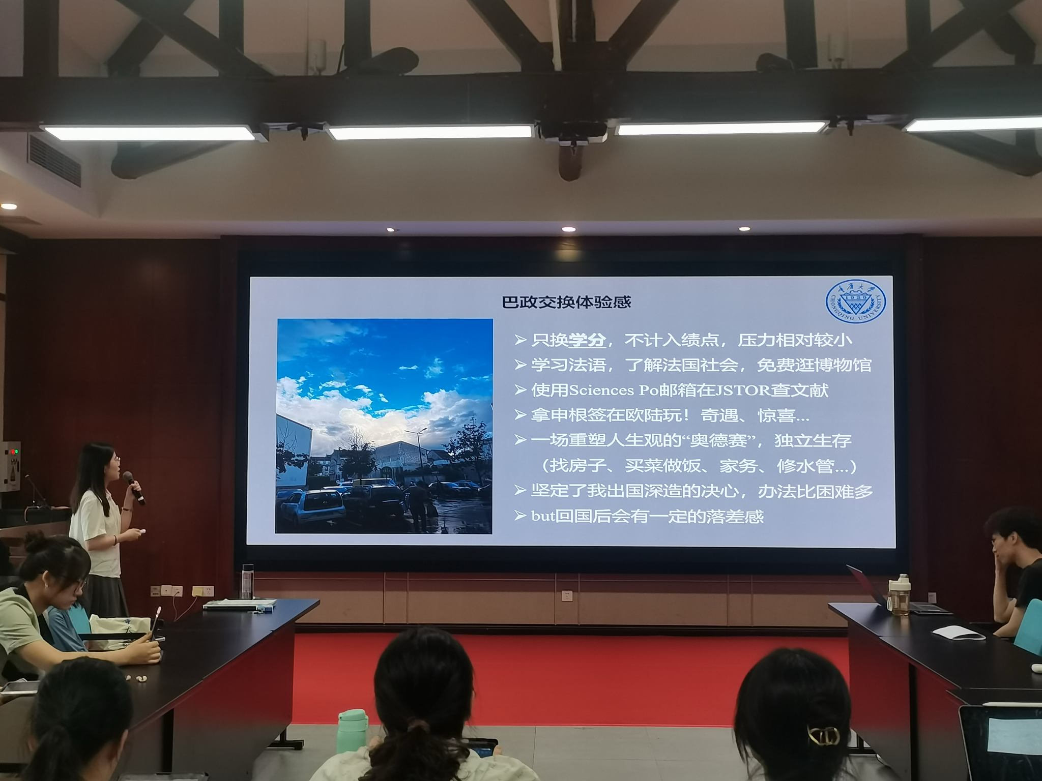 在分享环节中,两位刚刚从海外交流学习归来的学生代表分享了他们的宝贵经验。首先,中文系研究生高凤璐同学分享了自己2023年秋季学期在台湾大学的交换学习经历。在信息获取渠道方面,高凤璐建议同学们主动关注情色av